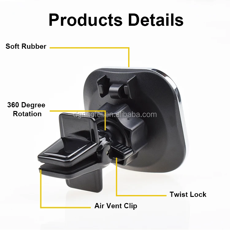 | Air Vent Type: | Horizontal and vertical air outlet; | Products name: | Magnetic car phone holder air vent mount universal; |