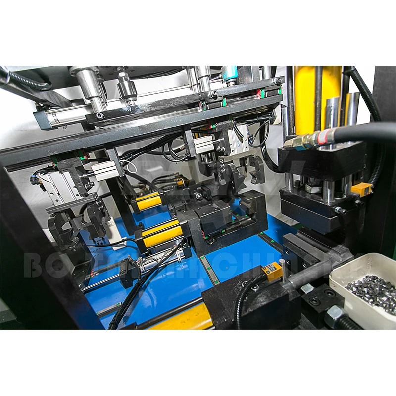 Application: Tube end forming machine is widely used in numerous end forming applications and industries, such as automotive exhausts, furniture, air conditioning, among others. Forming controlled by hydraulic, clamping controlled by hydraulic. Microcomputer controller with English or any other language