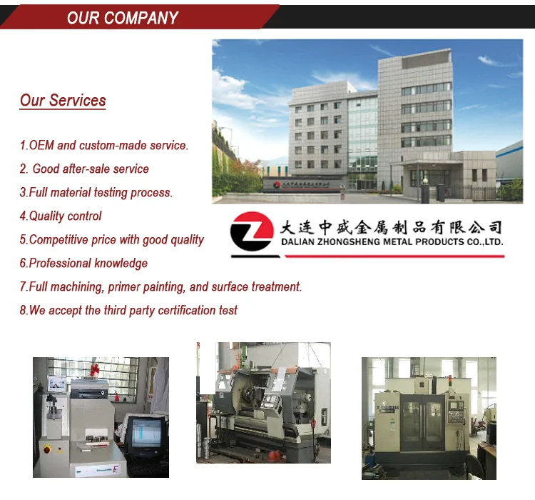 Dalian ZhongSheng Metal Product Co., Ltd. (for short:DZS), founded in year of 1995, is a Group Joint-venture corporation, specializing on OEM mechanical parts manufactured by process of casting, forging, machining and welding fabrication, etc.