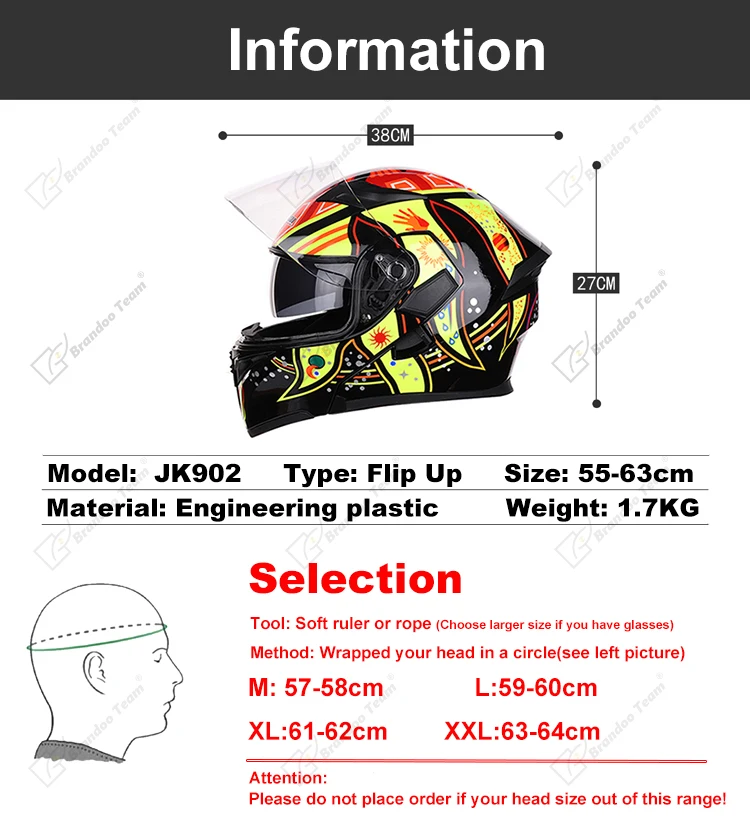 This motorcycle helmet have size M, L, XL, XXL optional.