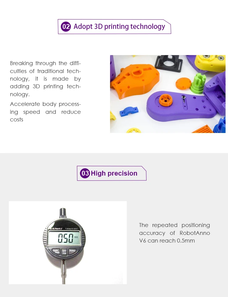 - Highly Precise: 6 DOF is for active joint bearing connection and high precision. 3D printing technology is adopted to produce all the parts