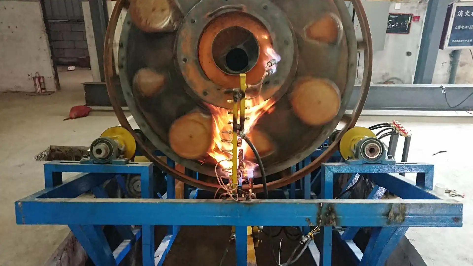 The pit-type open flame swinging machine abandoned the traditional swinging machine to realize swinging by connecting rod motor driving and hydraulic driving. The drive of the connecting rod is unstable, easily damaged, and the maintenance of the hydraulic cylinder is difficult. This machine uses a motor to drive the rack to achieve swing, which has the advantages of freely adjusting the angle, stable transmission and convenient maintenance. Available heat sources are natural gas, liquefied gas, etc.