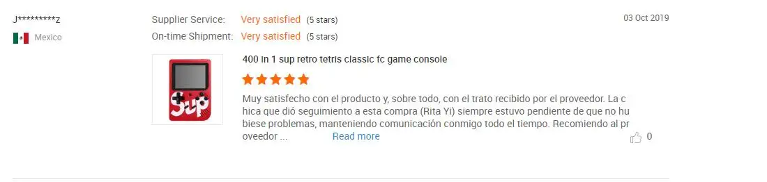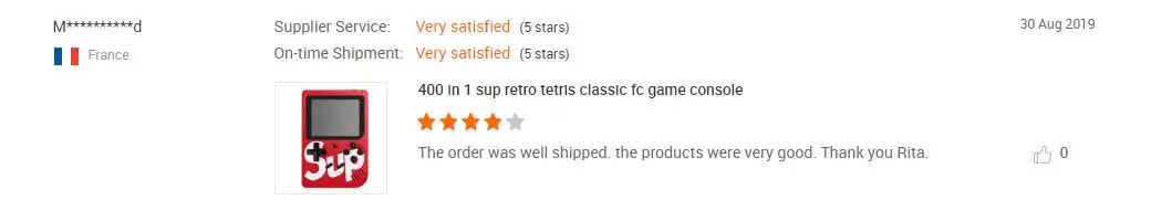 | Package listing | 1 Sup 400 classic mini game console +1 instruction manual +1 USB cable +1 AV cable +1 handle |