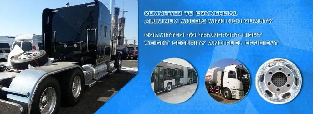 The truck & bus wheels sizes are covering: 22.5x11.75, 22.5x13, 22.5x14, 22.5x9.0, 22.5x8.25, 22.5x7.5, 19.5x7.5, 17.5x6.75, 16x5.5. etc. Military vehicles sizes have 18x9.5, 20x10, 20x11, and motorcycle wheel blanks are including 16x5.5, 16x3.5, 18x5.5, 18x3.5, 18x3.0, 19x3.0, 21x2.15, 21x3.25, 23x3.75.