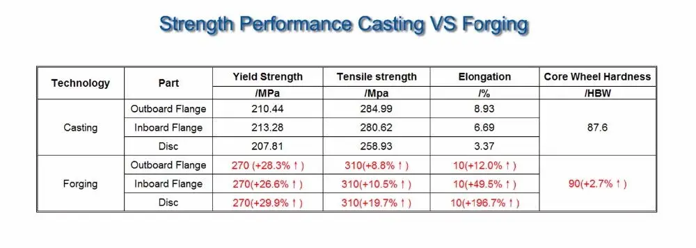 Forged wheels deform 5 cm when it subjected to 71,200 kg. But steel rims deformed 5 cm only with 13,600 kg. In Other Words, the strength of forged wheels is 5 times greater than steel wheels.