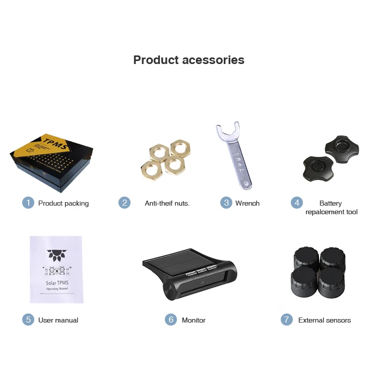 Tire Pressure Monitoring System for solar wireless car external TPMS | ||||||||||||||||||||||||||||||||||||||||
