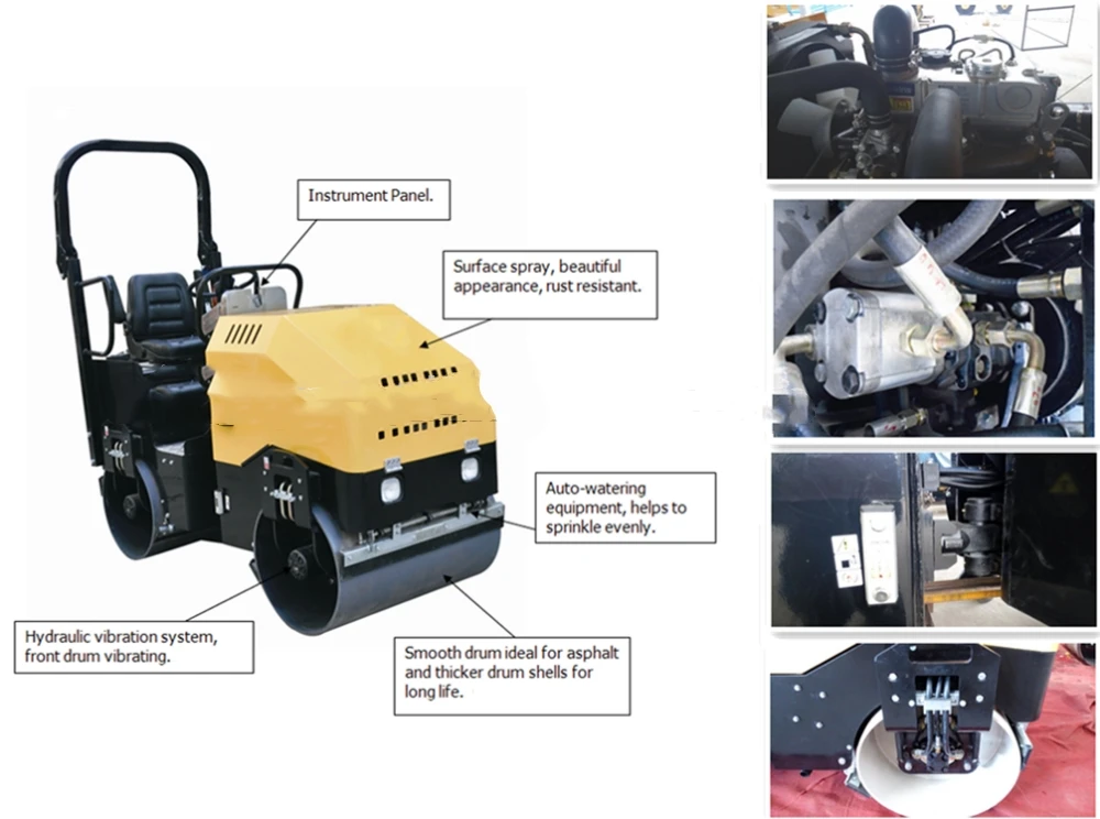 | Product name: | 1.5 Ton furuide double drums vibratory road roller for sale; | Type: | Double Drum Roller; |