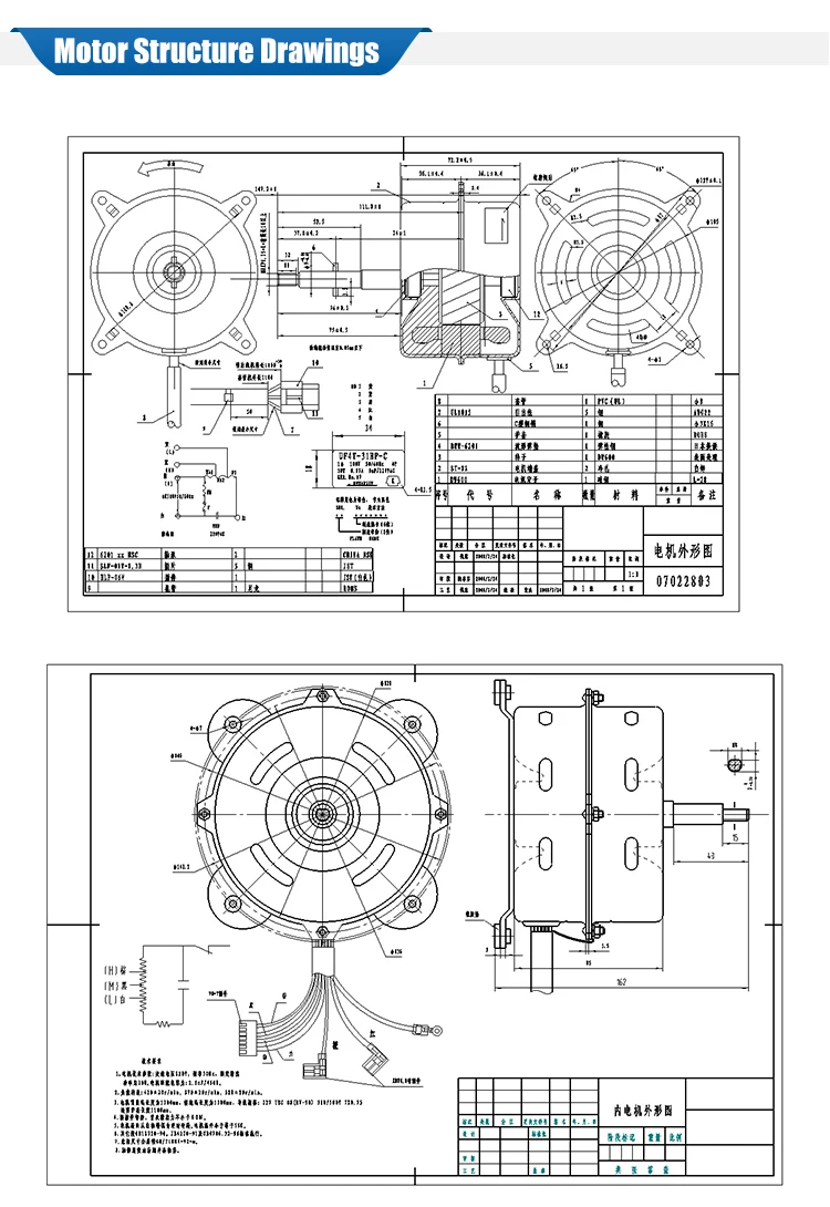 Model | Rated Voltage(V) | Rated Frequency (HZ) | Rated Power Output (W) | Rated Speed of Rotation (R/Min) | Capacity (uf/450v) | Insulation Grade | Electrode |