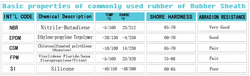 NBR, EPDM,FPM, SI. The FPM is particularly suitable for the use of strong acid, alkali, corrosive chemicals and high speed environment, and the temperature is 30 degrees and 160degrees