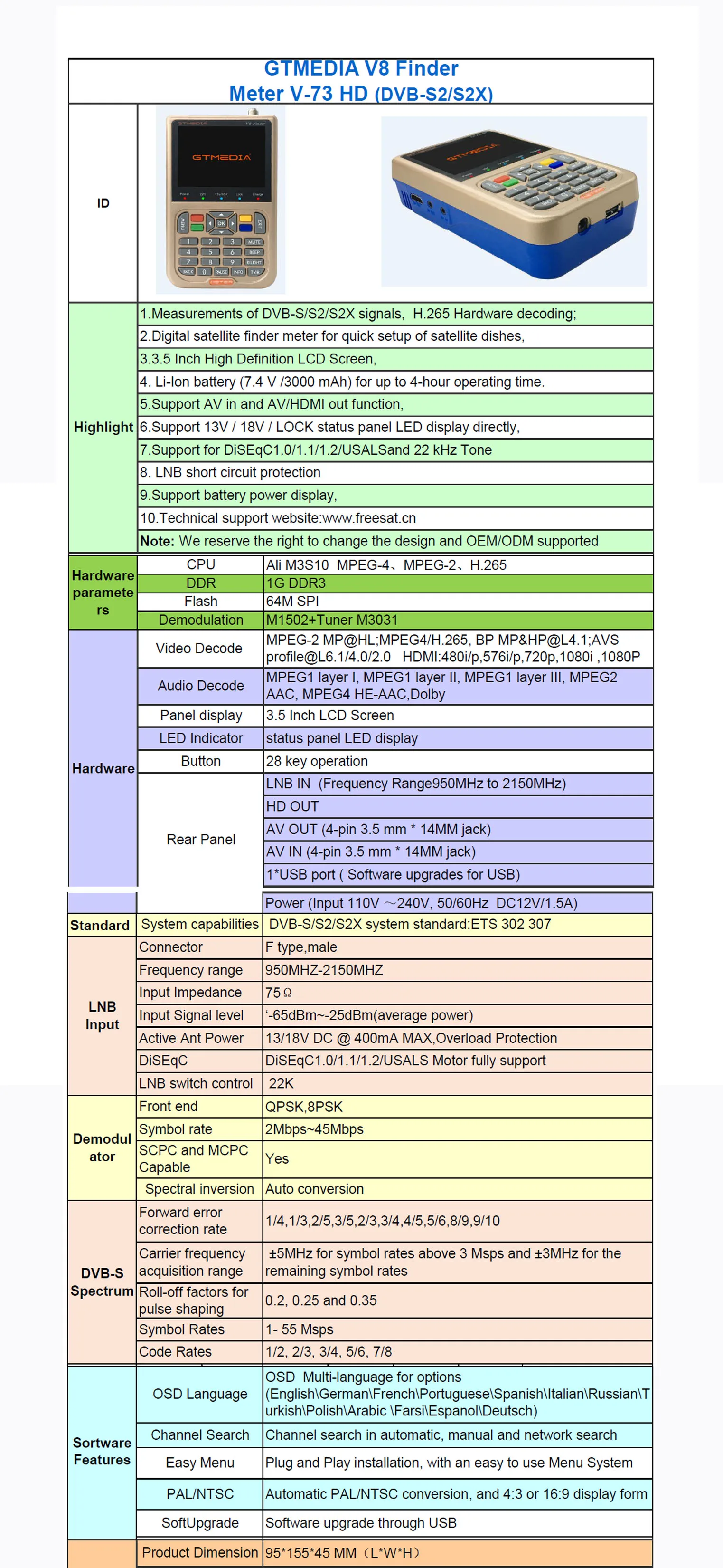 [Genuine] GTmedia V8 Finder HD DVB-S2 High Definition Satellite Finder Satellite meter MPEG-2/MPEG-4 GTmedia V8 finder 3.5 inch