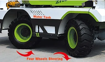 The Drive Type of this mixer is Four Wheel Drive plus Four Wheel Steering (4x4x4), which makes the turning radius much more smaller than normal type. The Turning Radius is only 4 M.