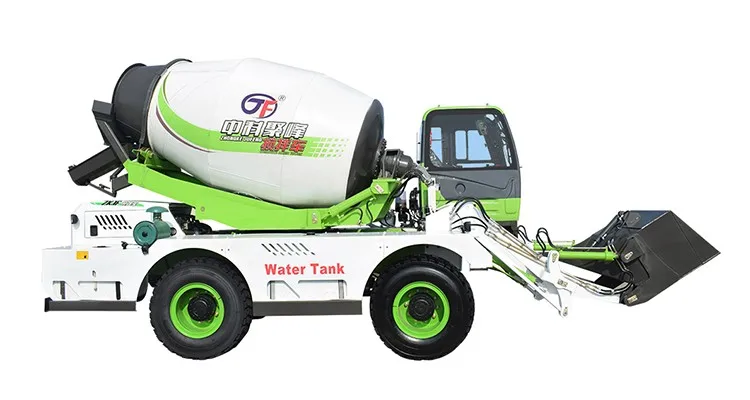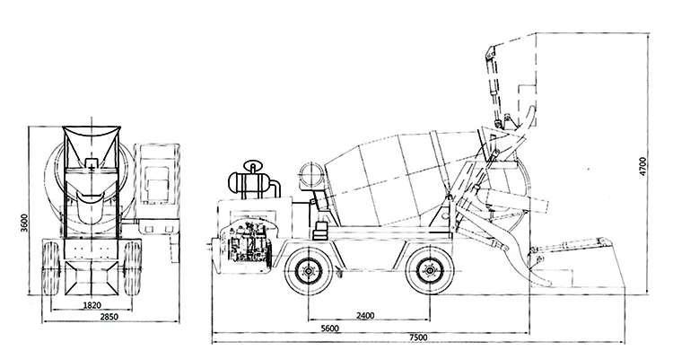 CMT4000R Self Loading Concrete Mixer is a kind of multifunctional machinery which combines the transit mixer, concrete mixer and wheel loader together. It can automatically load, measure, mix and discharge concrete mixture. Equipped with powerful YUCHAI ,85 kW Diesel engine and 4 wheel drive plus 2 wheel steering, the self loading concrete mixer is just like a truck and the operator can drive it to where it needs to go. It is very convenient for loading material, such as cement, aggregate, stone. The mixing unit is slewing hydraulically through 290° for high discharge over