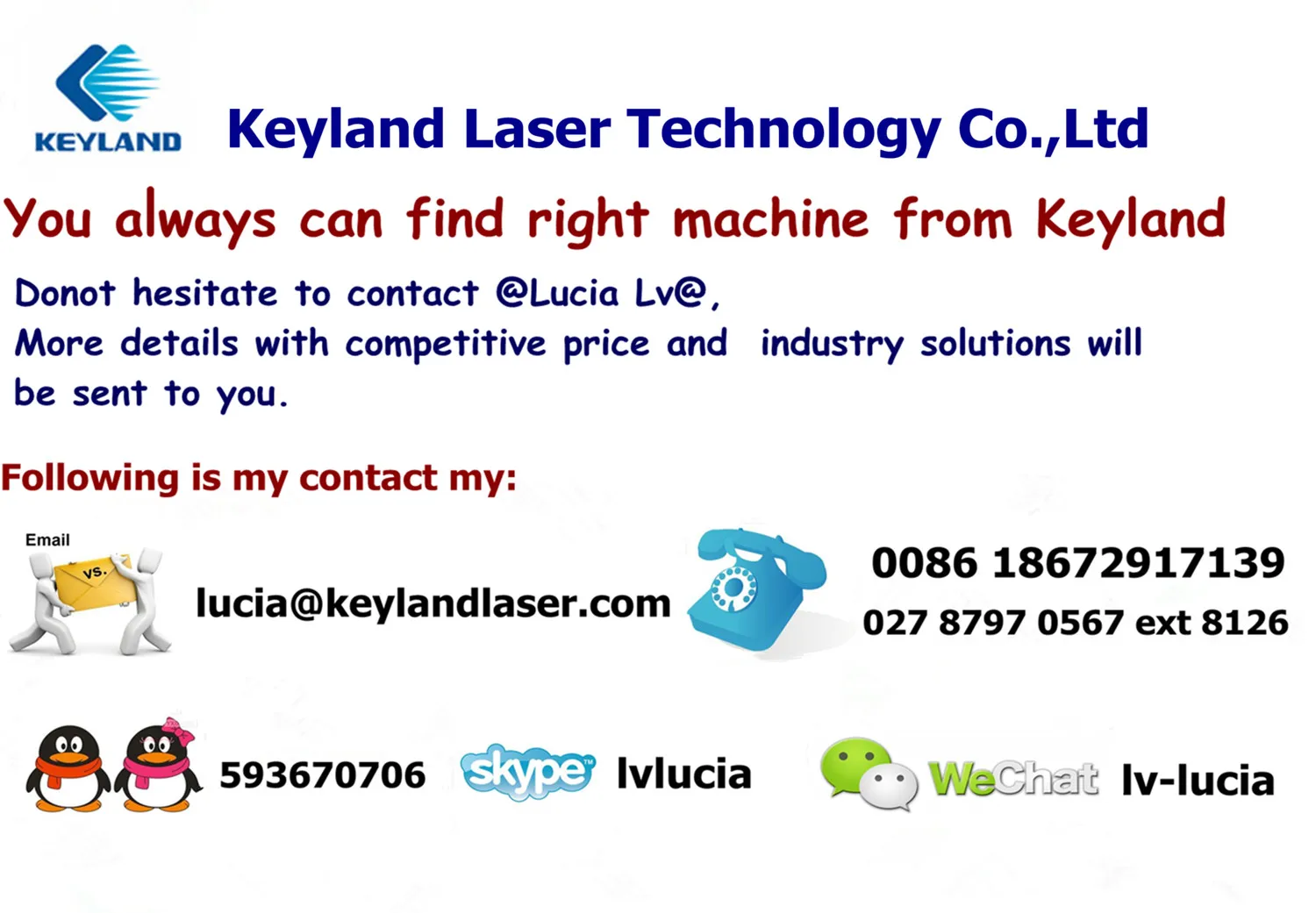 Email:lucia (at)keylandlaser.com