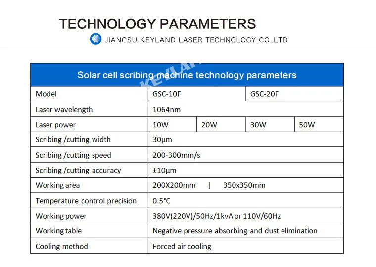 | Applicable Material: | Solar cell or Wafer; | Control System Brand: | Keyland laser; |
