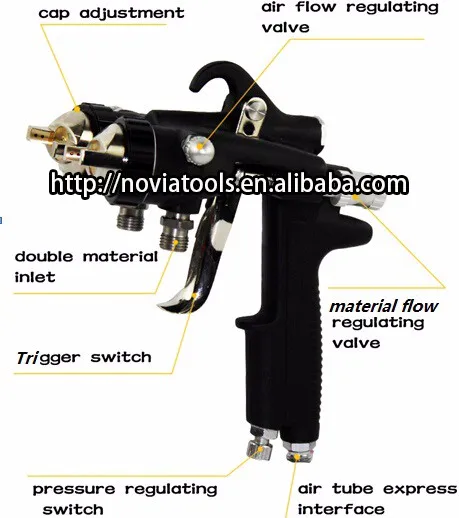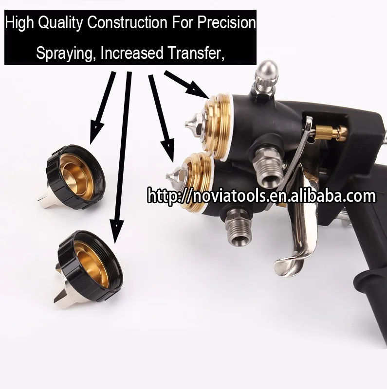 (For wholesaler market online buyers,please note that the Standard nozzle is 1.4mm,if you need 1.8 or 2.2mm,please leave your special request notice on the order message. Otherwise,we alway send the standard 1.4mm nozzle model and if need extra air cap,nozzle and needle set,please also indicate the nozzle size. Cost for each 2 extra air cap,nozzle and needle sets is $30,double heads gun, 2 sets for each gun )