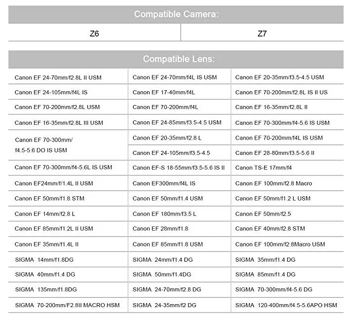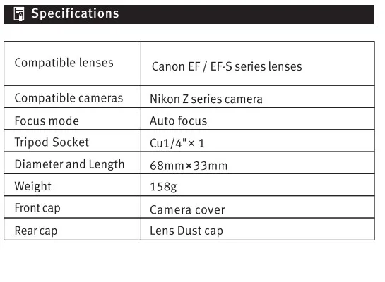 EF-Z lens mount adapter is suitable for Canon EF/EF-S series lenses to be perfectly nounted on Nikon Z series cameras.