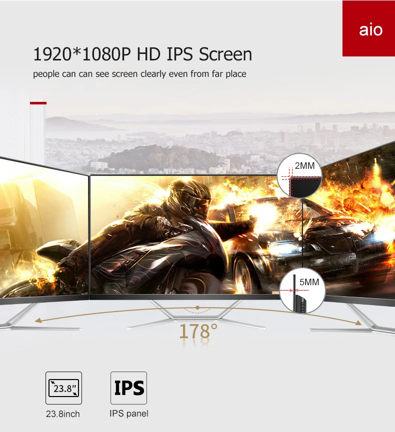 | Screen: | 23.8'' LED Back light, BOE/AUO Panel | |