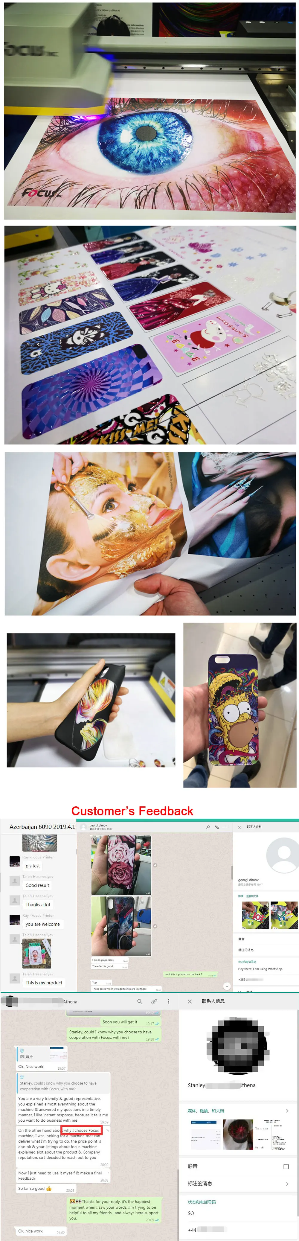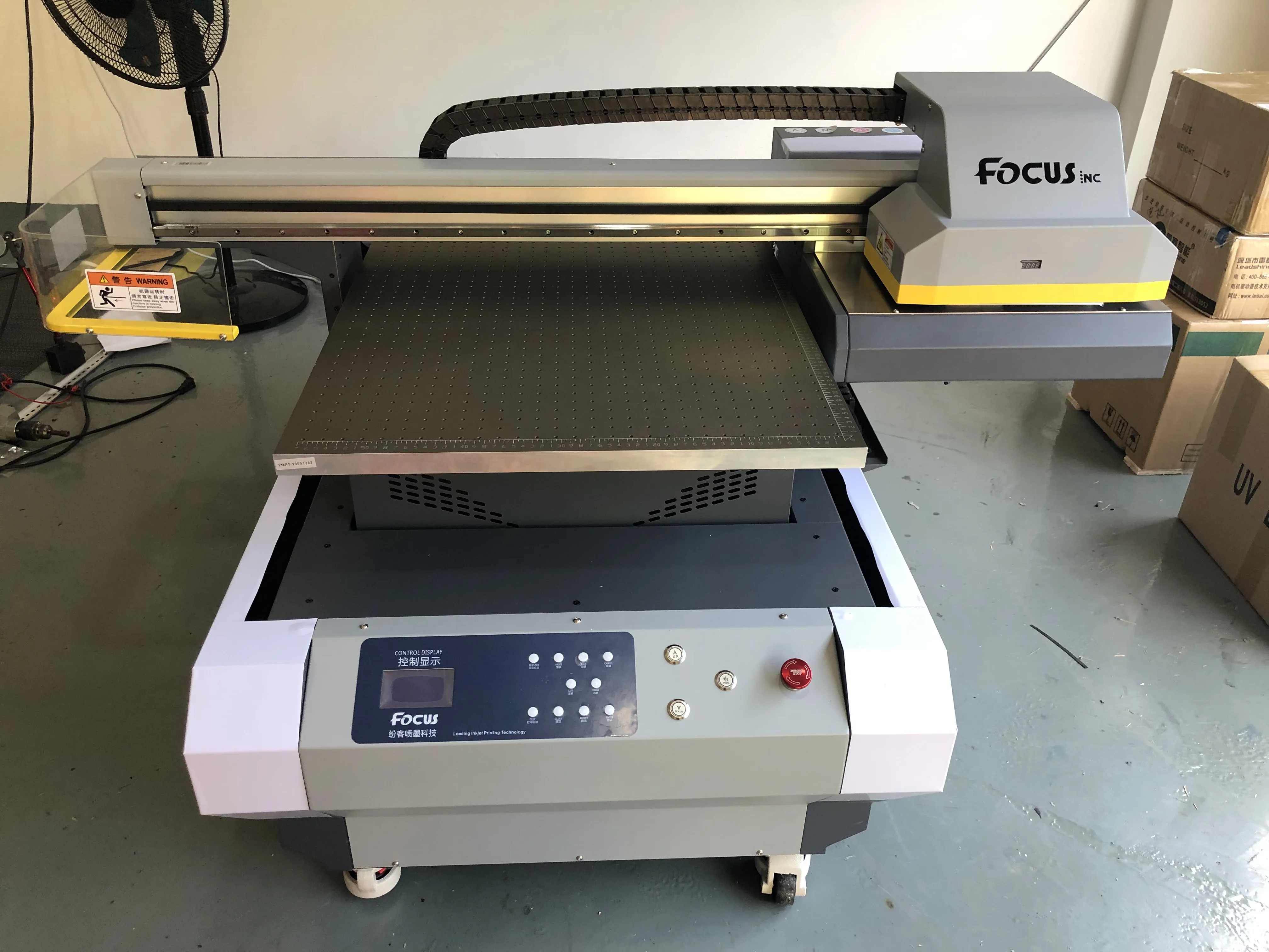 6090 digital printing machine price phone case printing machine uv printer which is a multi functional LED UV flatbed printer that created by Focus industrial co.,ltd. UV printer was built with industrial configuration as thicken aluminum profile, water circulation cooling system, 100W automatic detect UV Curing system... 8 color or 16 color and max. 5760 dpi printing resolution. Can print on bend, cylinder objects, balls and bottles. Output with good 3D texture printing result...