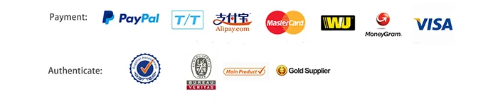 PayPal, Escrow, MoneyGram,for samples, small quantity order or urgent orders at the buyer convenience. Western Union T/T, L/C, for mass orders.