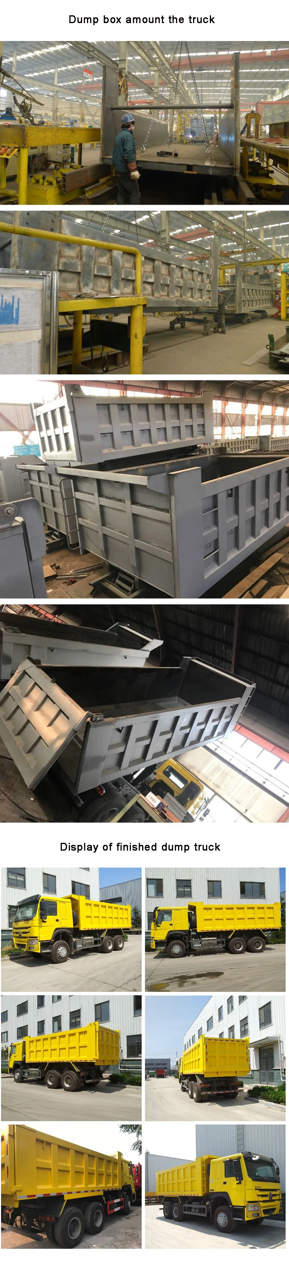 | Dump box thickness(mm) | Bottom:8mm, Side:6mm | Lift type of Carriage | middle lifting | ||||