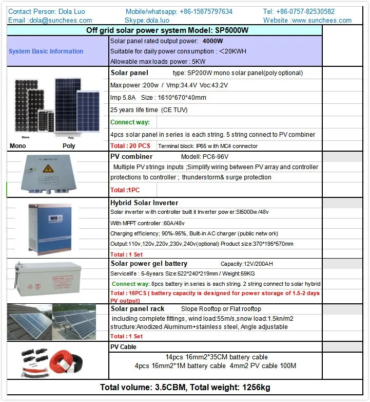 We design and make complete set solar power system, detailed quotation and specification, welcome to contact us directly.
