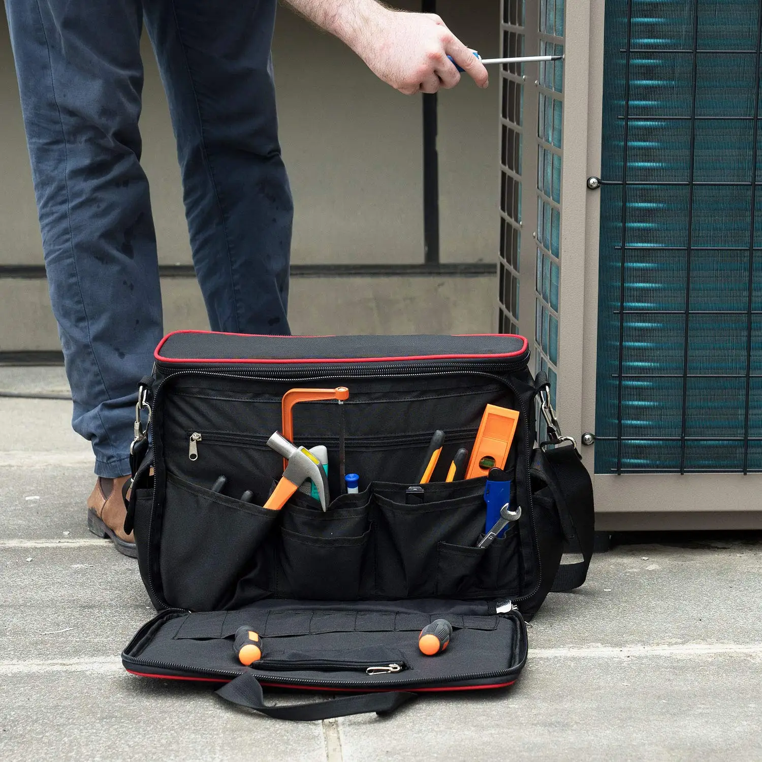 | Product name: | Large Tool Bag,Electrician Tools Pouch Wide Open Mouth Shoulder Storage Technicians Tote Pockets Organizer Bags |