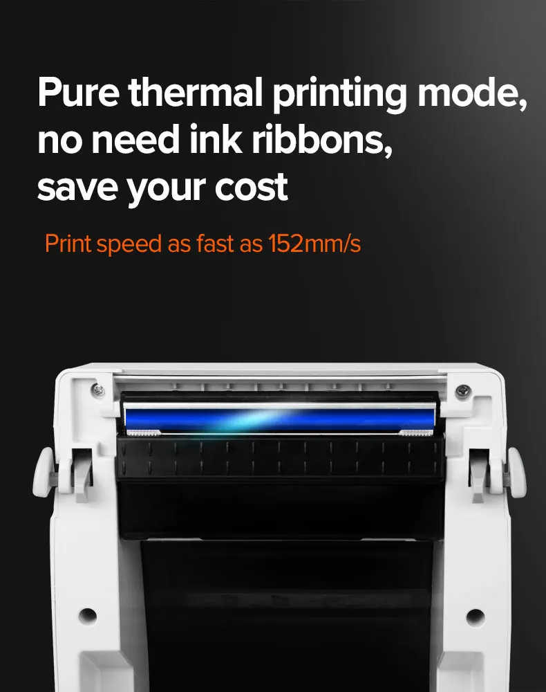 -Pure thermal printing mode, no need ink ribbons, save your cost