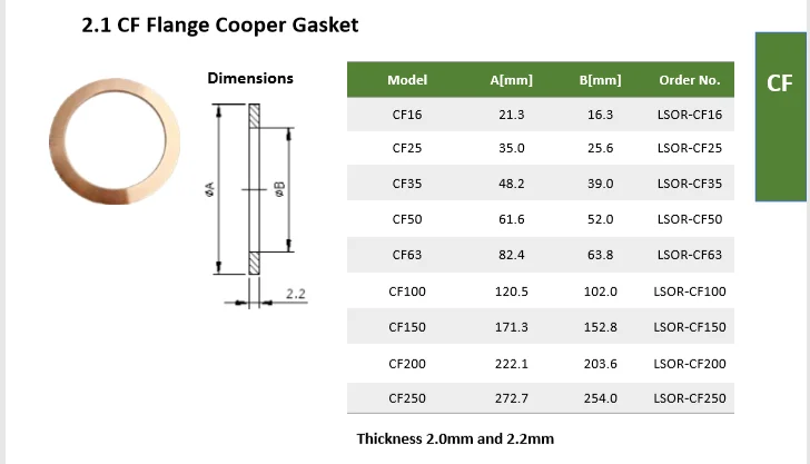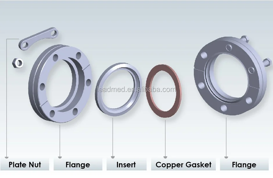 · CF Flange assembly comprises two CF flanges, a flat copper gasket, insert, bolts and Nuts.