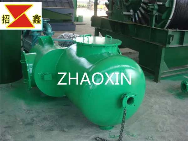 This product is an automatic water discharging filtrate cylinder with air-liquid separation cylinder of double cycle barrel. There is a floating cylinder inside it, for realizing cycling and discharging the water automatically. It is used in the filtering system, for realizing air water separation. When the filter productive capacity is 0.2-0.8t/m*2 h, feeding concentration is 45%, and the water content of filter cake is 10%, turnover time of filtrate discharging is 5-17 minutes.