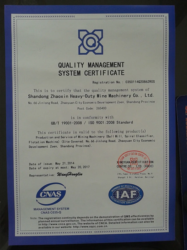 Zhaoxin mainly produces dressing and smelting devices (feeders, crushers, screening machines, grinding machines, grading machines, mixing machines, flotation machines, magnetic separation machine and cold selection machines) with a daily processing capacity of 50 to 5,000 tons as well as smelting automation control, etc., totaling 20 categories and more than 200 brands; can provide mining, prospection and mineral processing experiments, process design, installation and commissioning, technical guidance, worker training and other comprehensive services and has won users’ recognition and praise for its superior quality, reasonable prices and reliable operation over the years. So far, Zhaoxin has passed the certification of ISO9001:2008 successfully.
