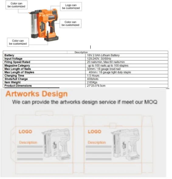 18V Cordless Nailers and Staplers and Li-battery cordless nailer gun :