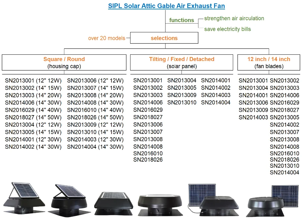 With basic product appearance in 4 ways: Tilting PV + Square Cover / Tilting PV + Round Cover / Fixed PV + Square Cover / Fixed PV + Round Cover, but with more than 20 models for your selections!