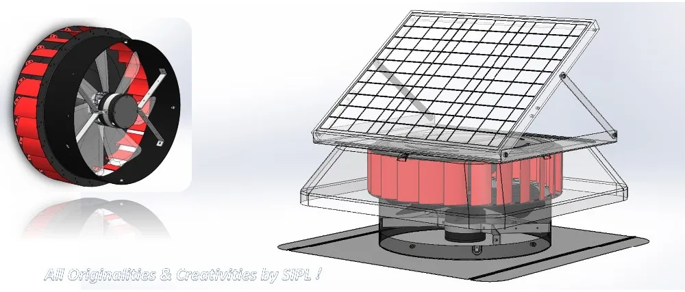 | Application: | roof mounted heat extractor solar machine; | Solar Panel: | 40 watt / 21 volt (495*495*25mm); |