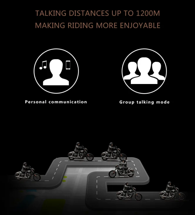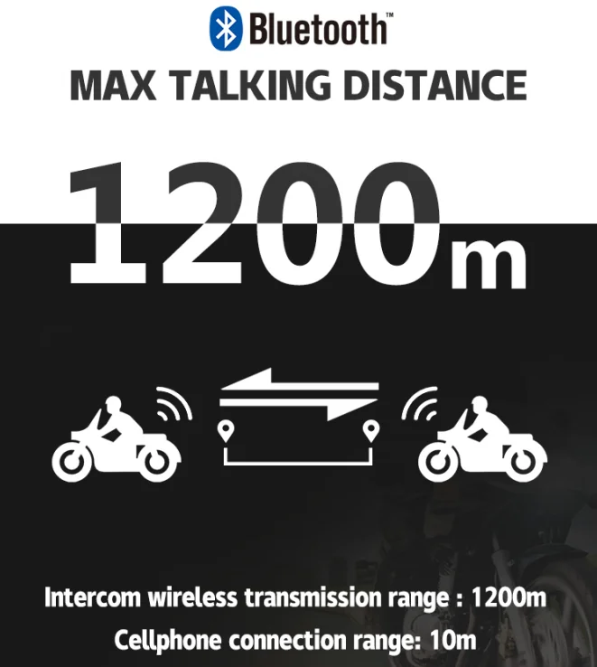Long range: 1,200 meters intercom, Bluetooth interphone kits for helmet motorcycle, Snowmobile, ski and more