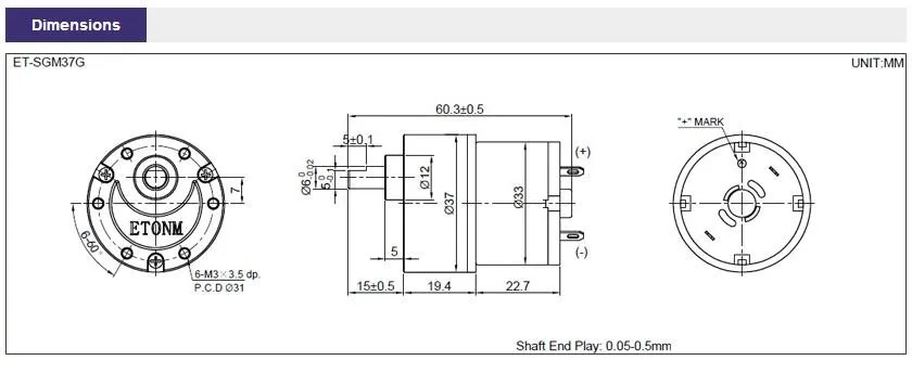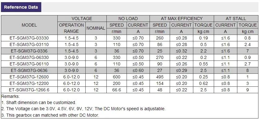 | rotation direction: | CW/CCW running; | Model Number: | ET-SGM37-G; |
