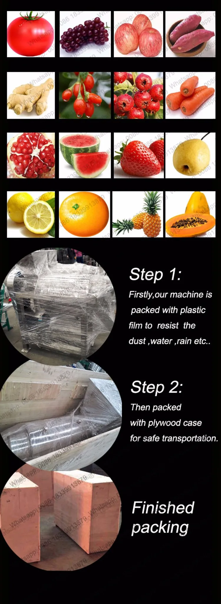1. This machine is applicable to extracting juice from various fruits, such as tomato,pineapple,apple, watermelons, grapes, strawberries, pears, lemons, oranges, oranges, tomatoes, papaya, carrot, ginger and other fruit and vegetable liquidetc.