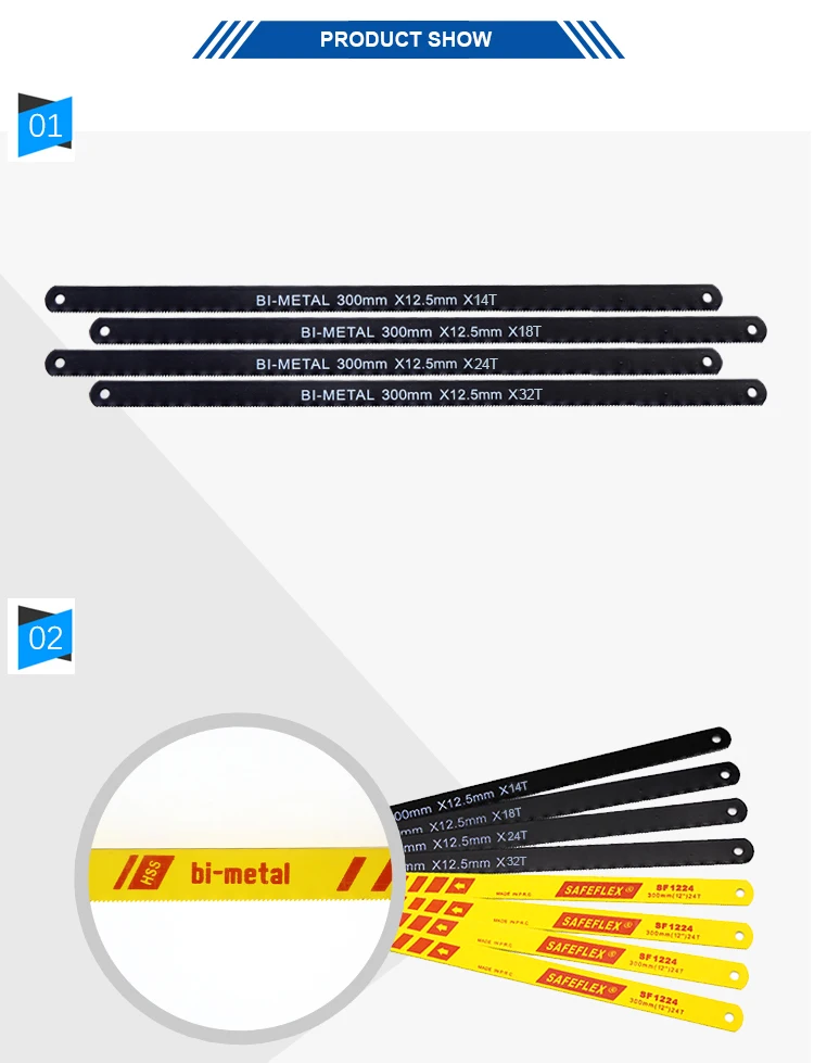 | Model Number: | 14TPI/18TPI/24TPI/32TPI; | Product name: | Hacksaw Blades Steel Saw Blades 12 x 1/2" 24TPI hacksaw blade bi-metal; |