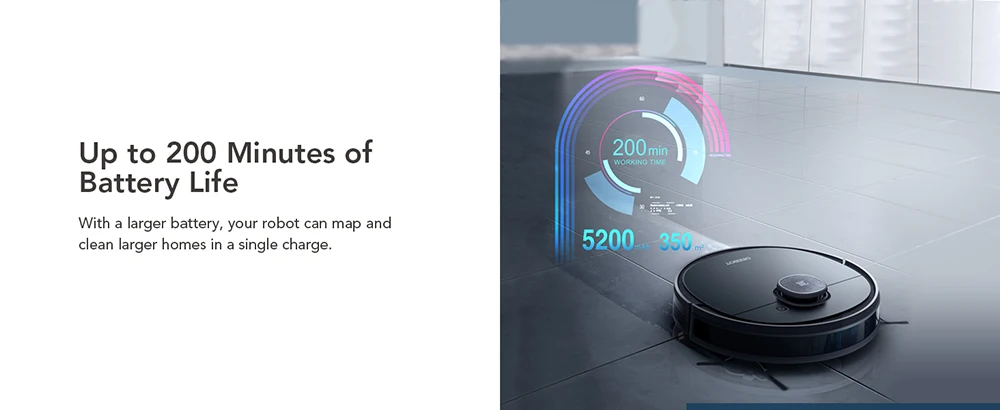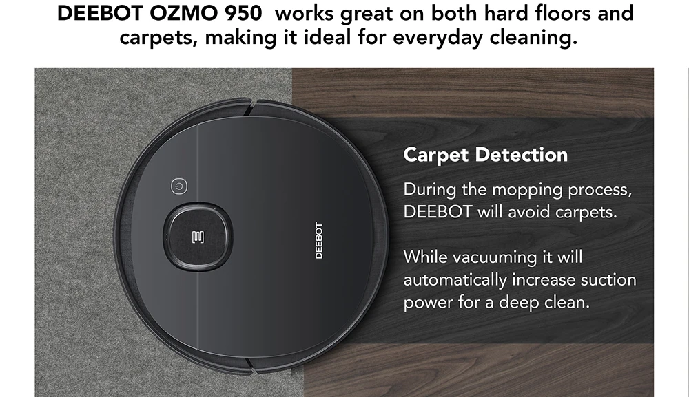 The ECOVACS DEEBOT OZMO 950 2-in-1 vacuuming and mopping robot has up to 3 hours of battery life and is the most powerful DEEBOT ever. With 3 levels of suction power (normal, Max, and Max plus), and multiple other amazing features, DEEBOT sets a new standard for everyday cleaning.
