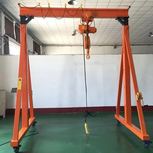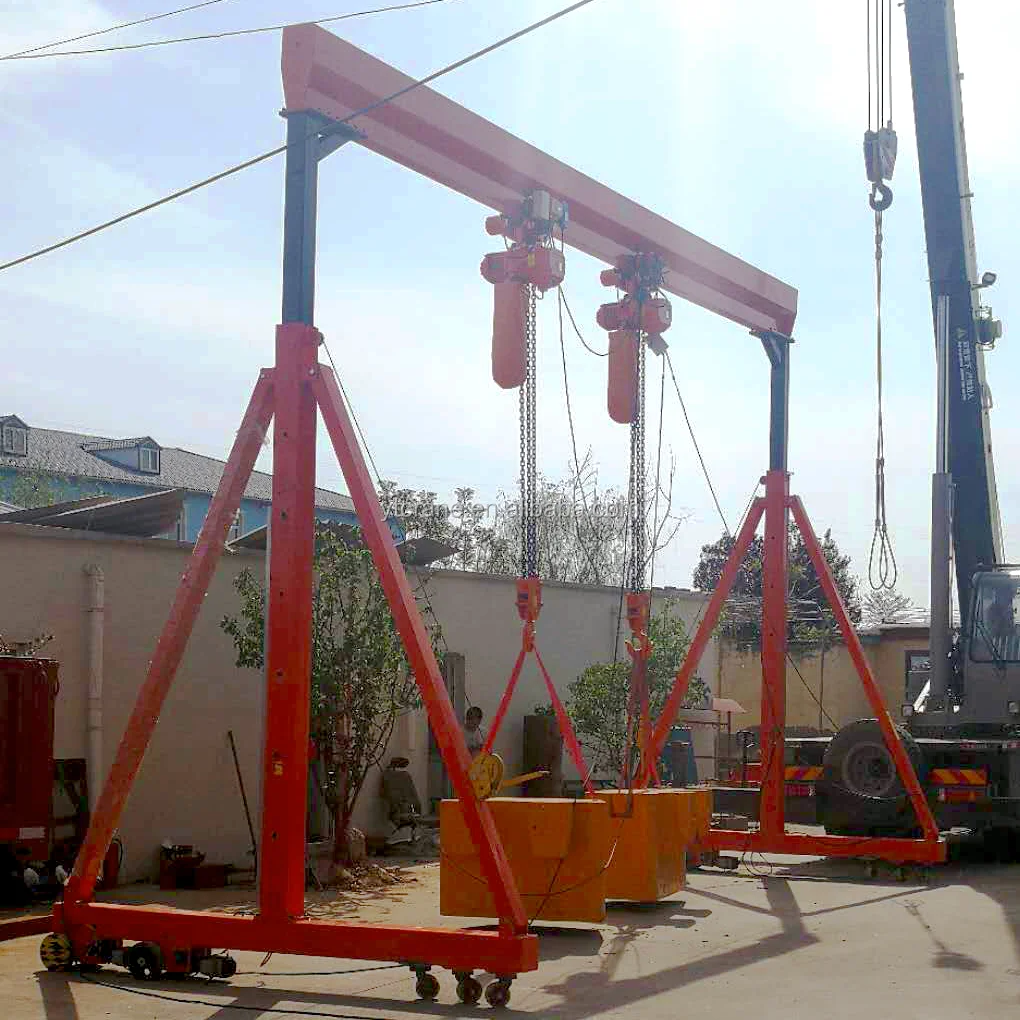 There are many types of gantry crane, here is portable gantry crane. Portable gantry crane is called mini gantry crane, frame gantry crane, it's a light small lifting crane, which has the features of simple design, moving freely, high quality, cheap price. The total lifting capacity of portable gantry crane is 0.5ton-10ton, and it adjusts to work in small workshop, warehouse, stocks, etc. Especially in areas where cranes are required to move freely.