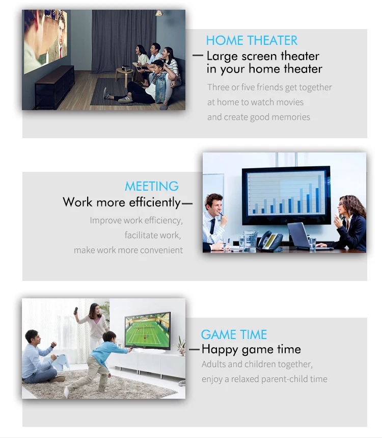 | Use: | Business & Education,Home,Outdoor theater; | Home Theater Projector: | Yes; |