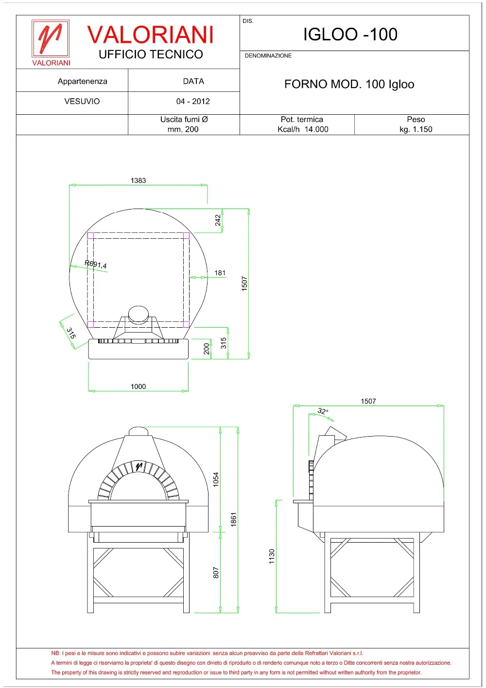 The professional model IGLOO is one of the best seller of our Valoriani ovens range. It is the perfect solution for those who need an oven ready for use solution of a professional oven realized with the best refractory materials, best insulation materials and best 100% Made in Italy experience. It is very versatile and suitable for many different kind of pizzas and food baking. Aesthetically it has a traditional dome shape that can be customized with mosaic tiles. It is possible to customize several features as for example the dimension of the shelf, the flue exit, the arch color etc. In case the oven cannot access already assembled, we can quote an assembly on place by our technicians or by our representatives.