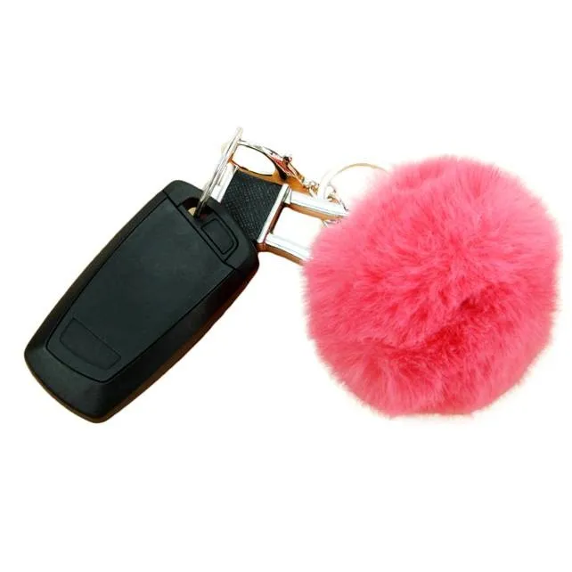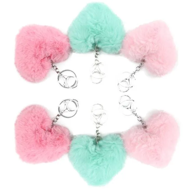 Heart Shape Plush Rabbit Fur Charm Pom Pom Ball Key Chain