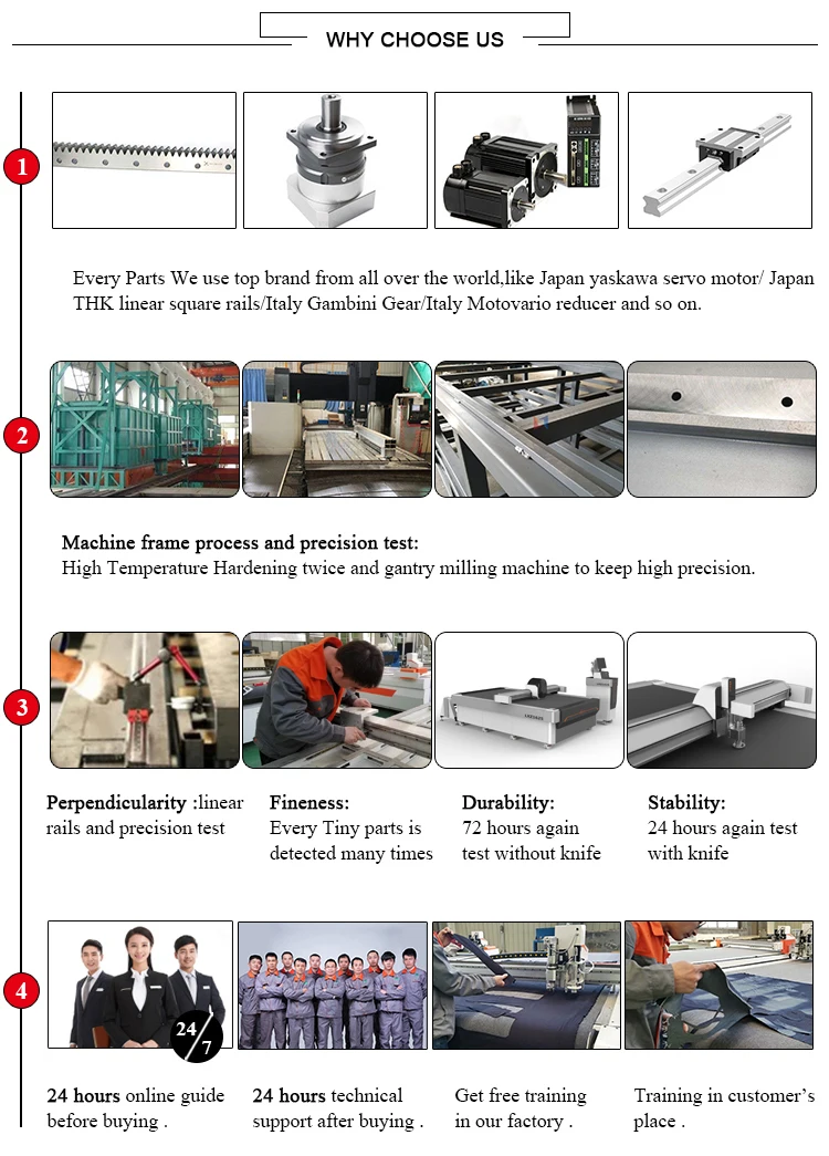 1. Imported Taiwan square linear guide and Japanese servo motor ensure high accuracy, fast cutting speed and stable working performance;