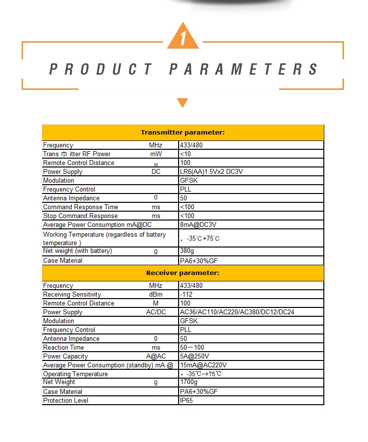 | Receiver Output | Relay 5A@250v | ||||||||||||