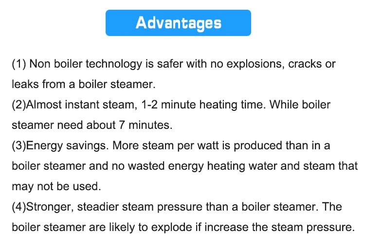 Answer: A: Our machines use the most advanced German honeycomb evaporator technology. This technology is the most mature and stable evaporation technology of its kind in the same kind of products. The technology has the advantages of quick steam integration, good steam quality, high saturation, stable gas pressure, safety and reliability, sufficient stamina, continuous use without loss of pressure.