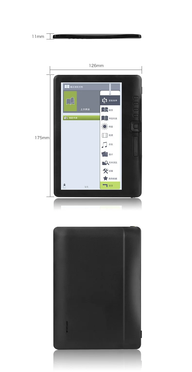 | Weight: | 280 g; | Product Name: | 7'' ebook reader with color screen 800*480 TFT screen; |