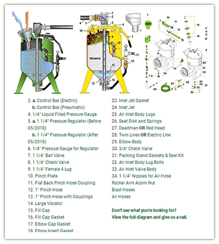 ♦ Operating pressure:30-150PSI 5. ♦ Lifetime warranty on blast pot