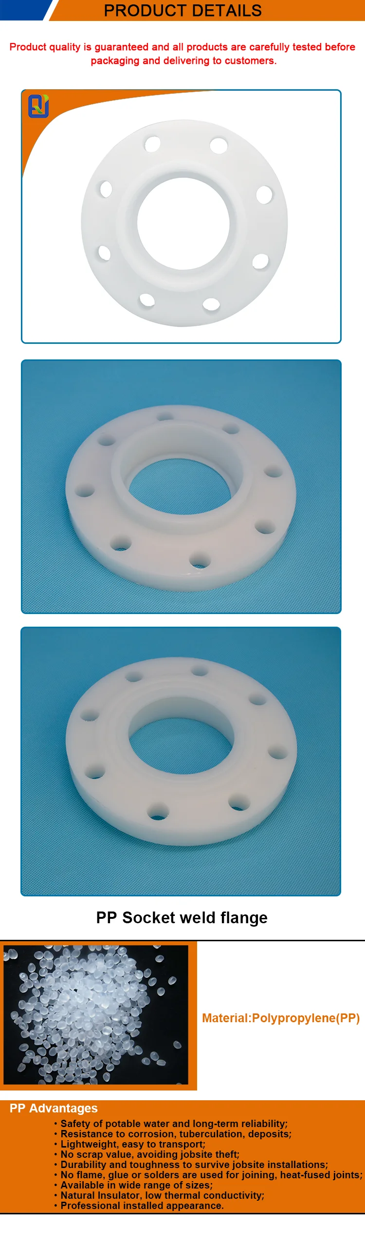 | Product name: | PP socket welding flange; | Place of Origin: | Jiangsu China; |