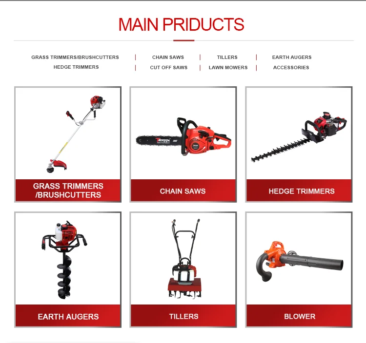 | More Details | Max engine speed:9000rpm Handle:Loop handle Belt:Single belt Fuel mixture ratio:25:1 Head diameter:45mm Head length:1M Weight:11kg |