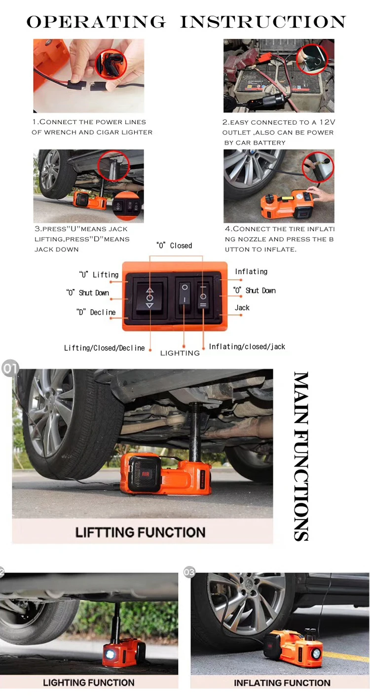 3 in 1 Auto Electric Jack Dual-function Type Electric Hydraulic Floor Jack